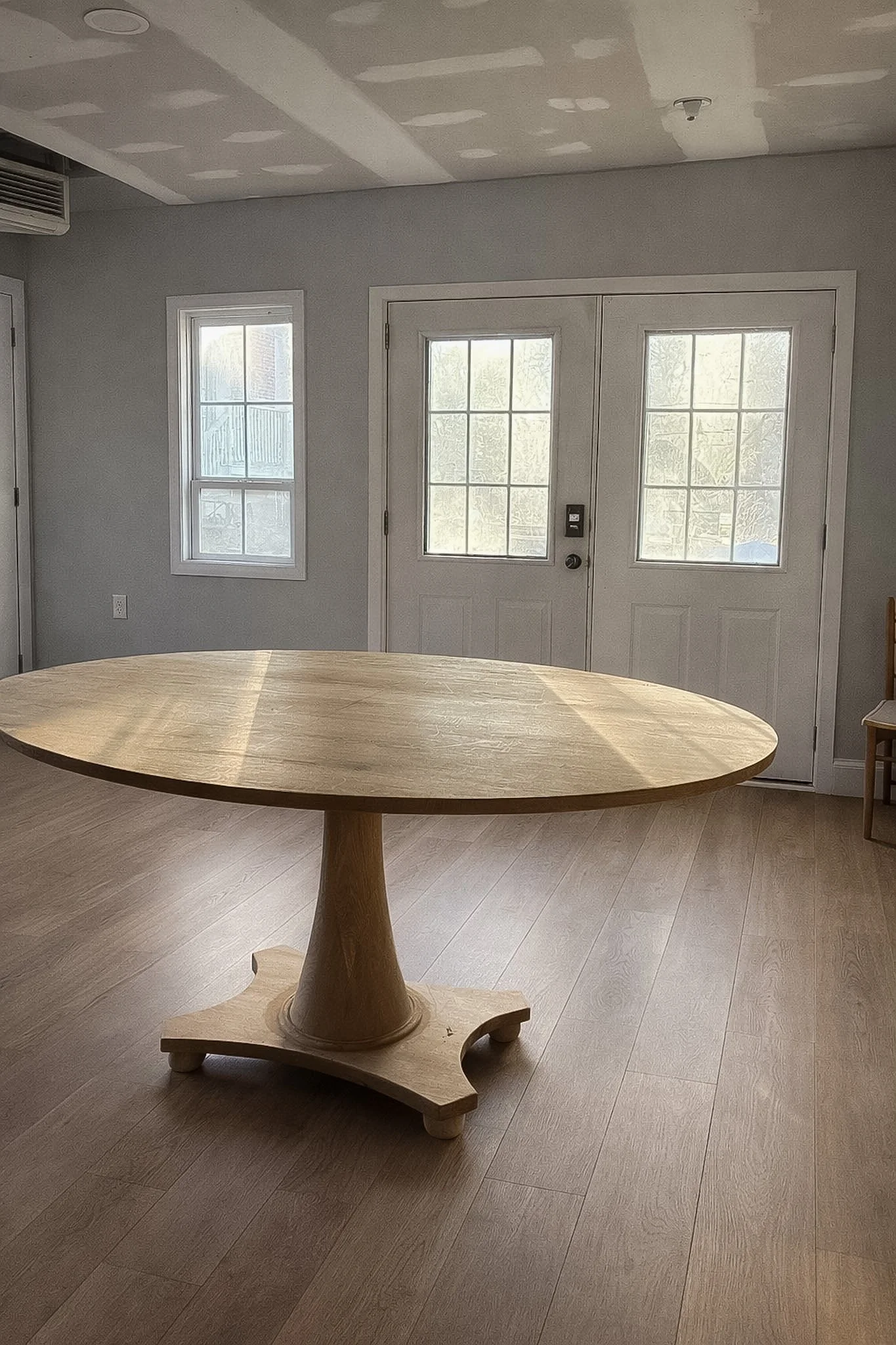This darling table is a classic pedestal dining piece designed for smaller gathering spaces and everyday meals. Its round top rests on a turned pedestal base, creating a balanced and timeless silhouette that fits naturally into breakfast nooks, kitchens, and cozy dining rooms.